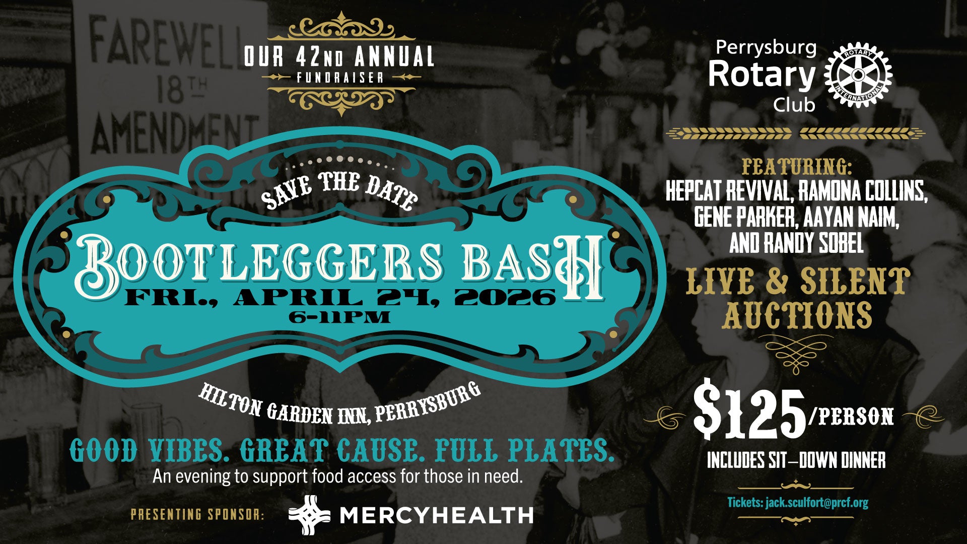 Slip into a speakeasy style and party at Bootleggers Bash, a Prohibition Era Party for Scofflaws and the Perrysburg Rotary Club’s annual fundraiser. Eat, drink, and be generous while enjoying good vibes, a great cause, and full plates -- all to support the Perrysburg Rotary Community Foundation and food access for those in need. Featuring local jazz & blues musicians: Hepcat Revival, Ramona Collins, Gene Parker, Aayan Naim, and Randy Sobel.